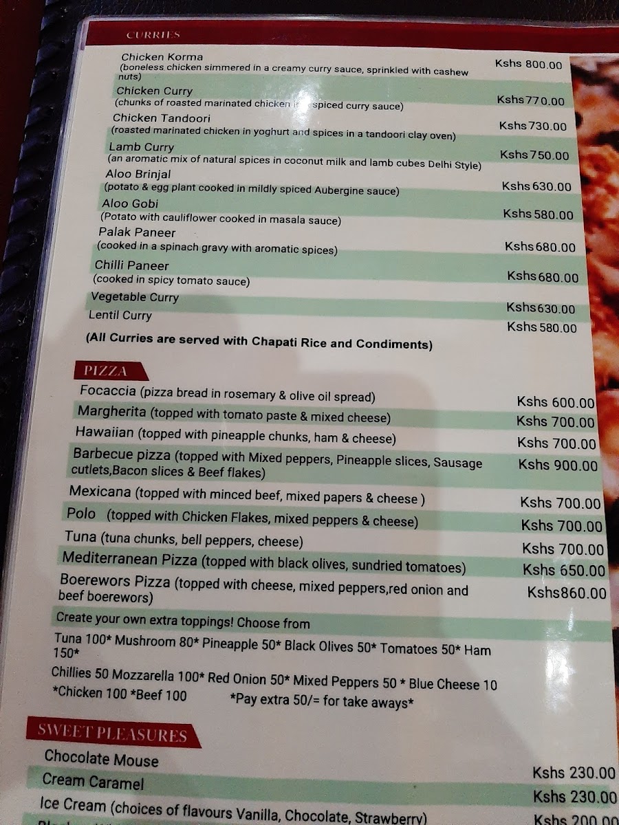 Patrons rave about the delicious, affordable meals that Aubergine serves. The kitchen boasts a range of dishes that reflect both local flavors and international cuisine, ensuring something for every palate. Customer reviews emphasize the excellent portions and the hospitable, friendly service that enhances the dining experience. In addition, the ambiance strikes a perfect balance between comfort and elegance, making it an ideal spot for anyone exploring Kericho.
